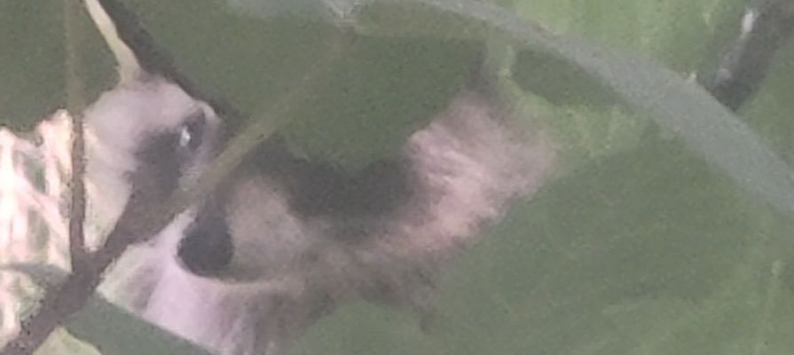 The baby raccoon did not stop picking and eating while I stood below taking photos.