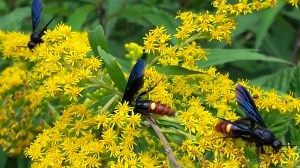 New York Ironweed, Veronia noveboracensis, is a bright, violet-purple that is great contrast to the Yellow Swallowtails that flutter around it. This plant is over six feet tall.