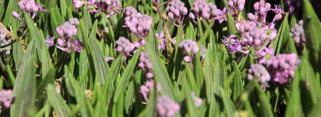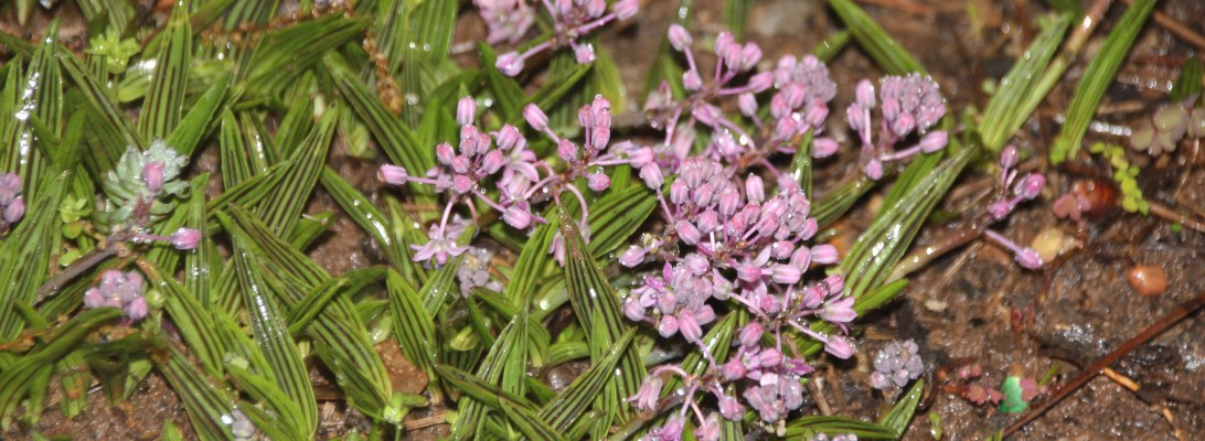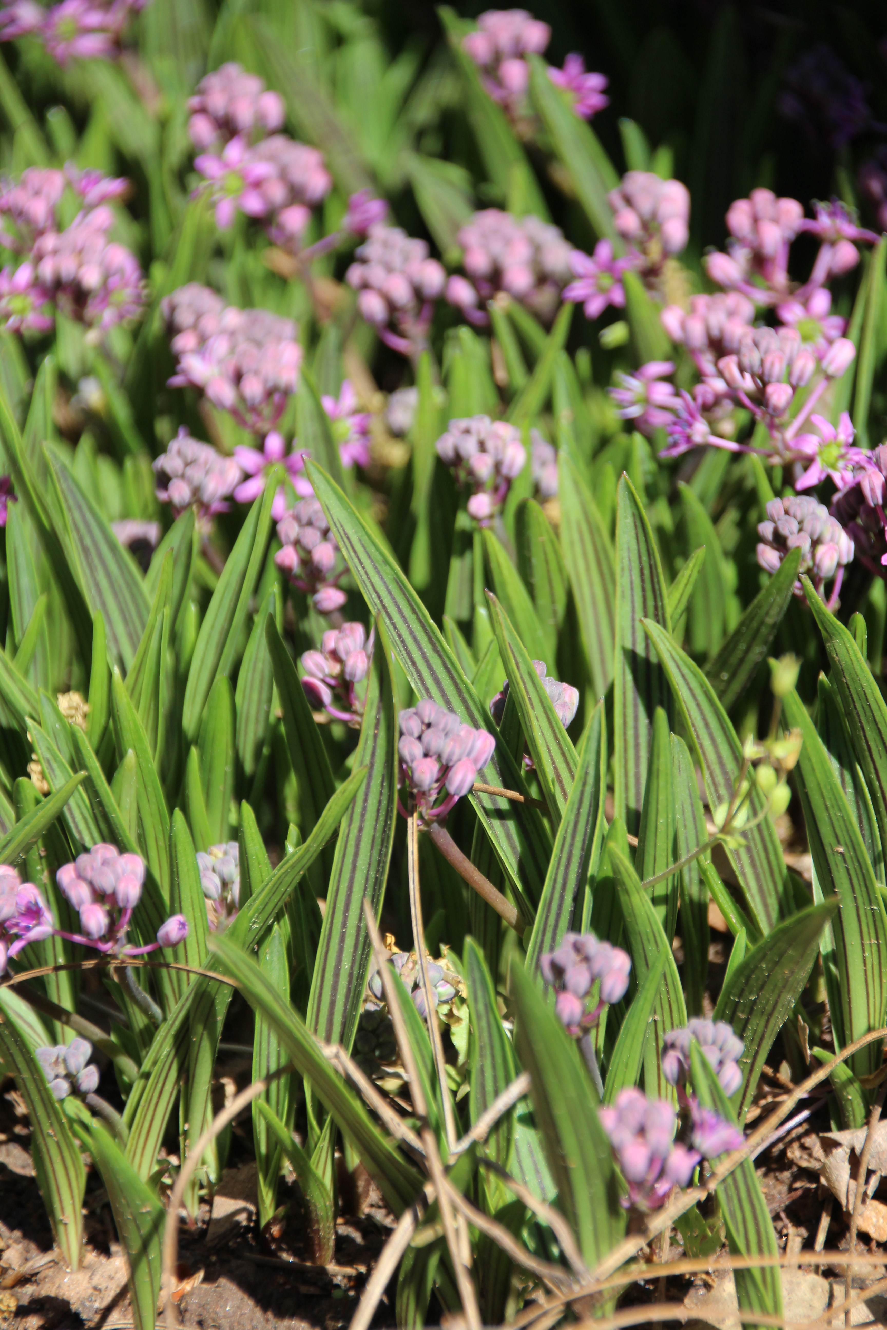 This little jewel, Ledebouria cooperi, is a tiny bulb with one leaf and an inflorescence of dusty plum blooms.