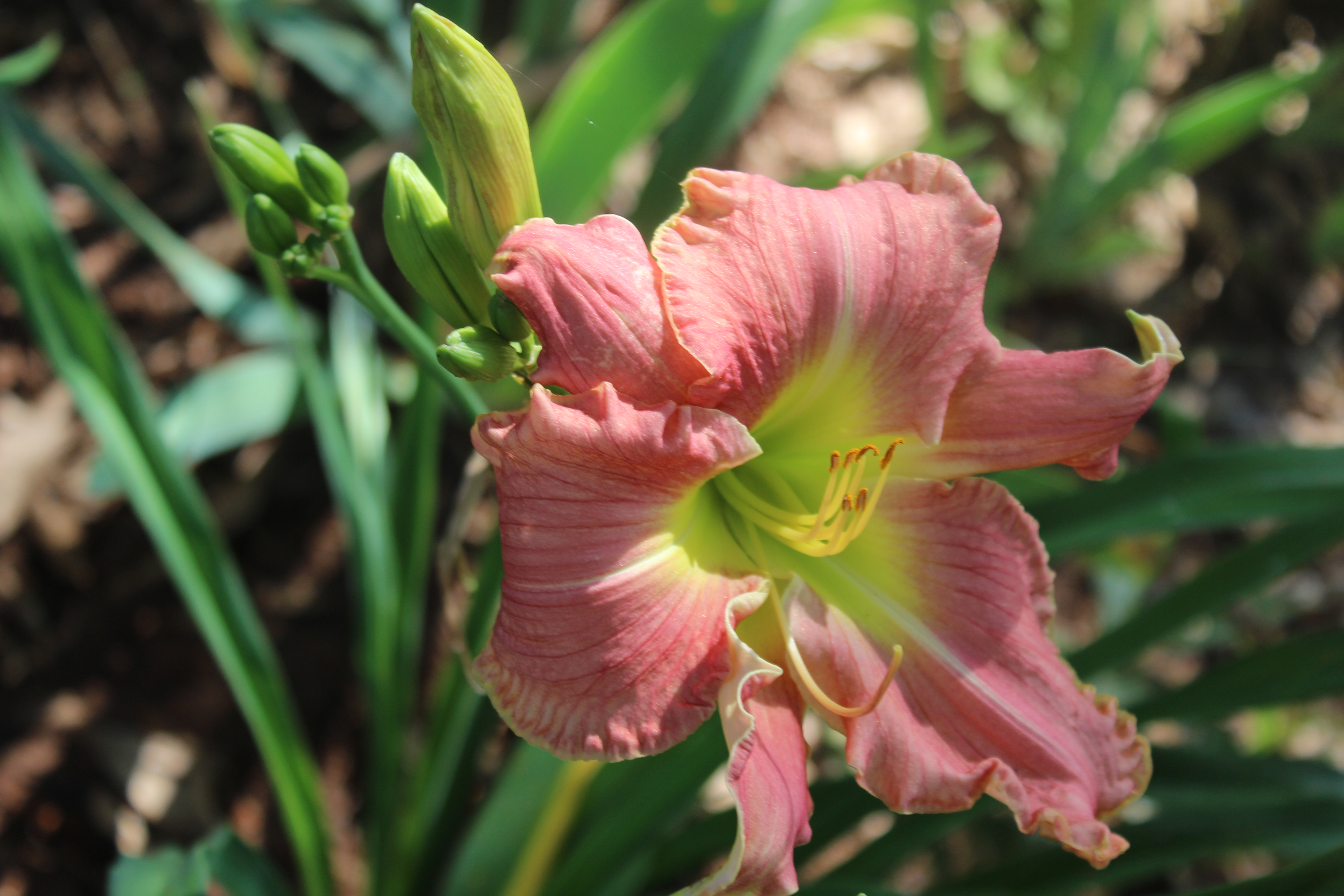 This giant, yellow daylily is the workhorse of the bunch. Its blooms are the biggest and it blooms the longest.
