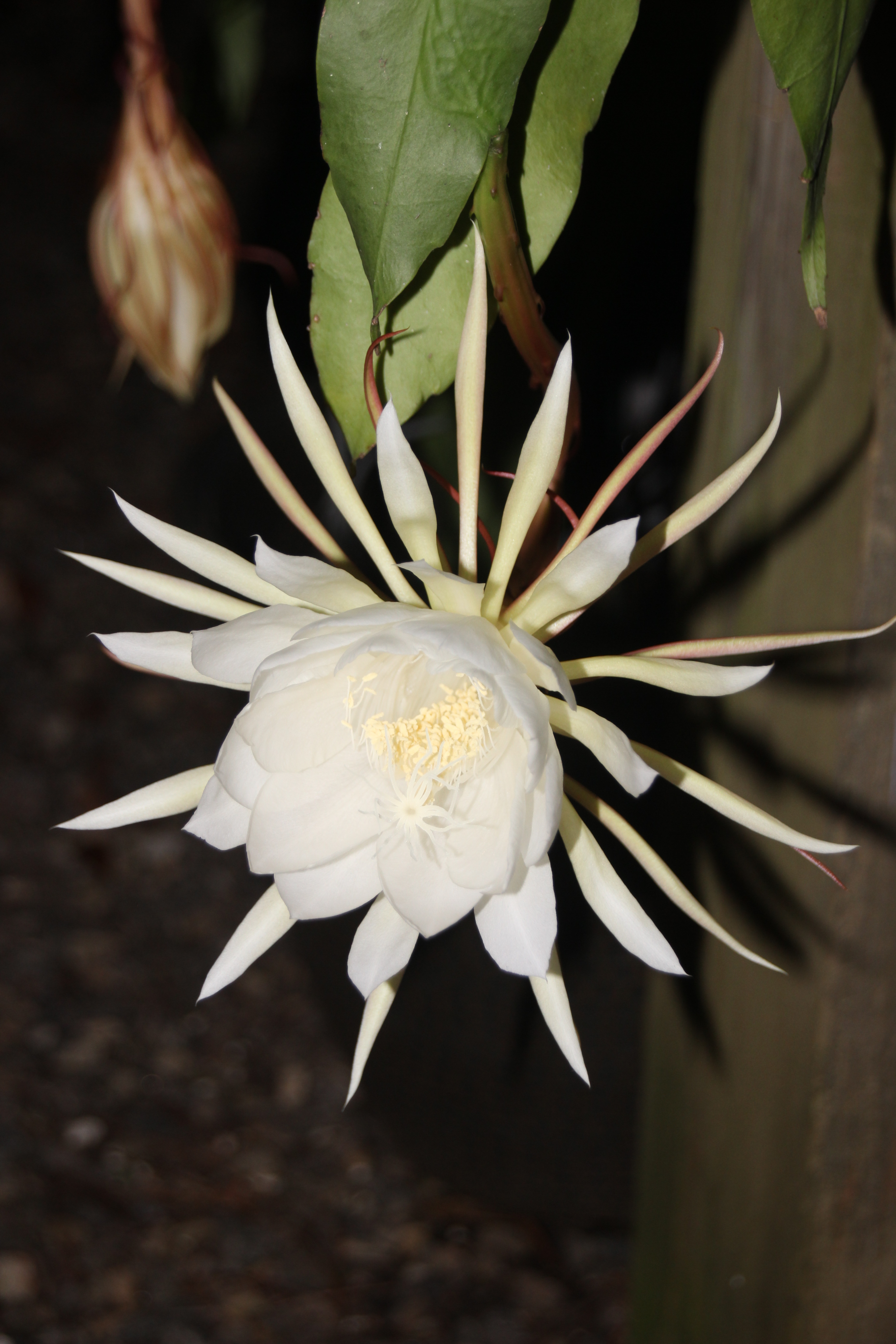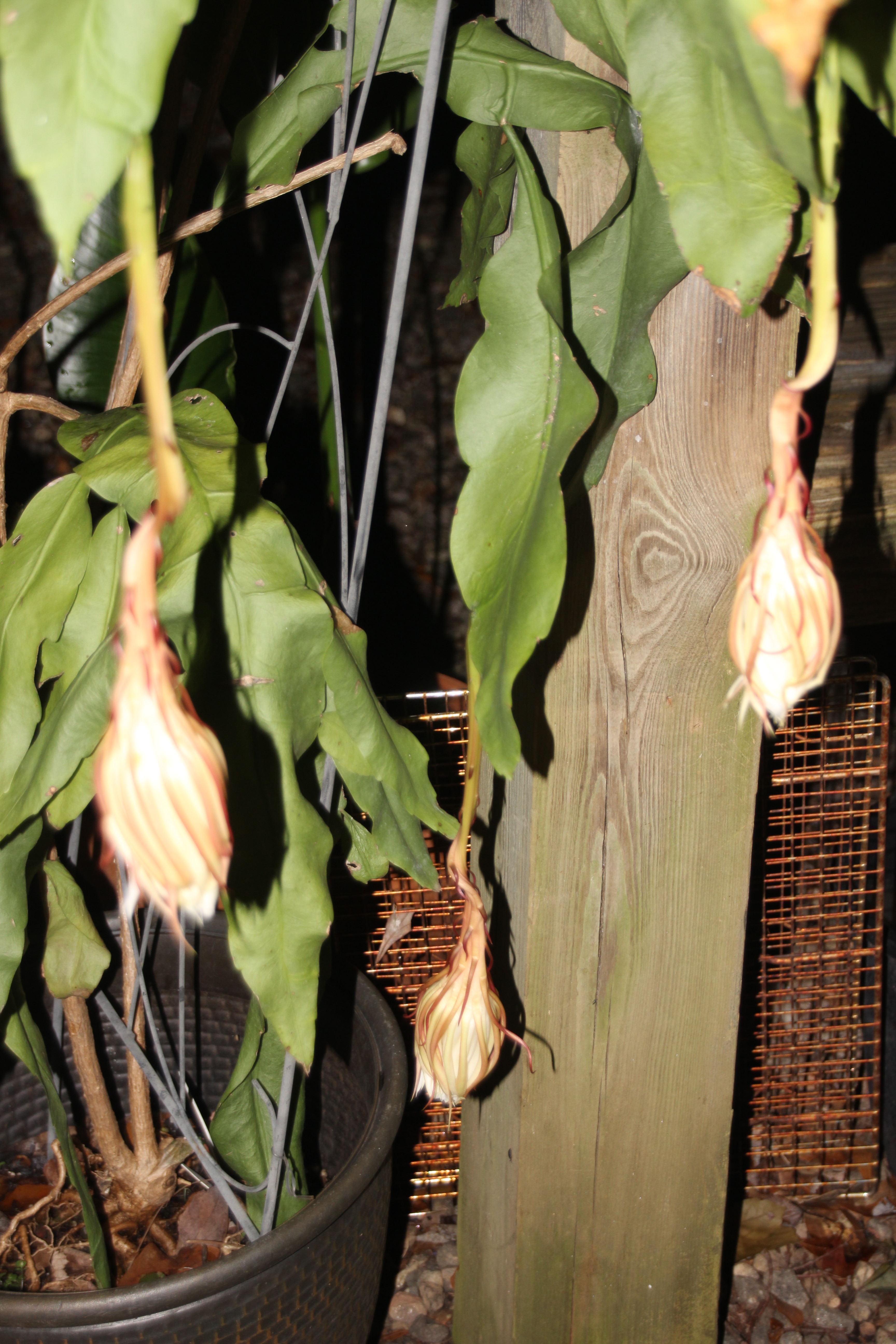 The first thing that happened was the Cereus ‘Queen of the Night’ plant that I gave to my friend, Palmer, had sixty buds on it, many of which bloomed last night.