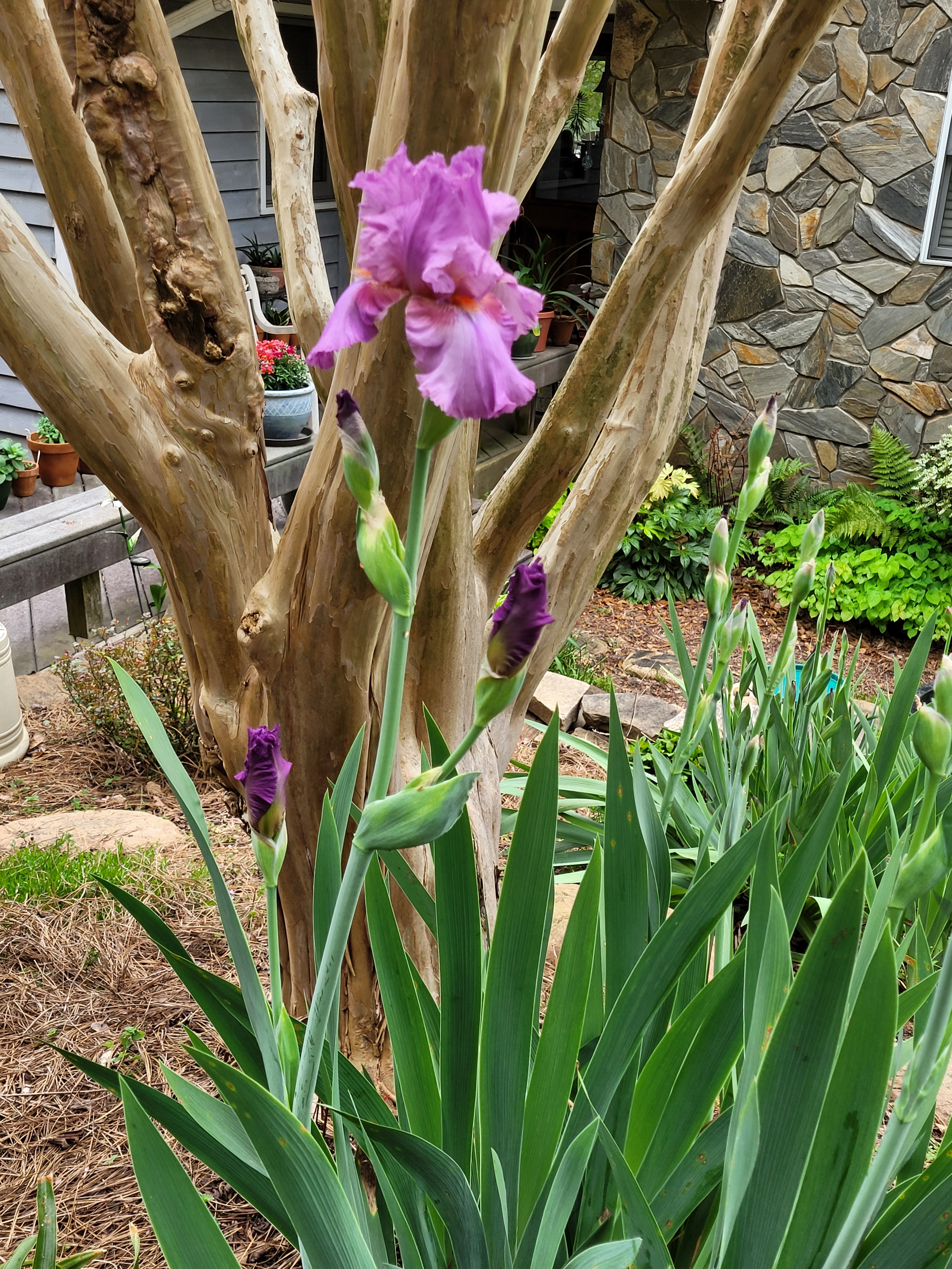 I have visited the iris this morning. The show will continue for several more weeks. I will not be here to stake and deadhead. They will survive.